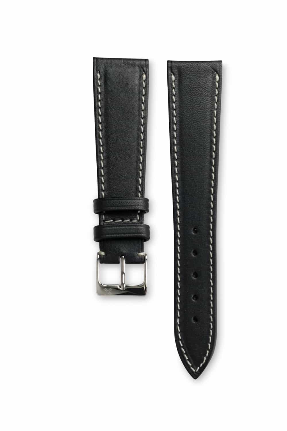 This Classic smooth Deep Black version is giving your watch a very masculine and classy look and can suit to any type of watch from very dressy to more casual. Also, the contrasted white cream sewing color with bring a touch of sportiness to your watch.