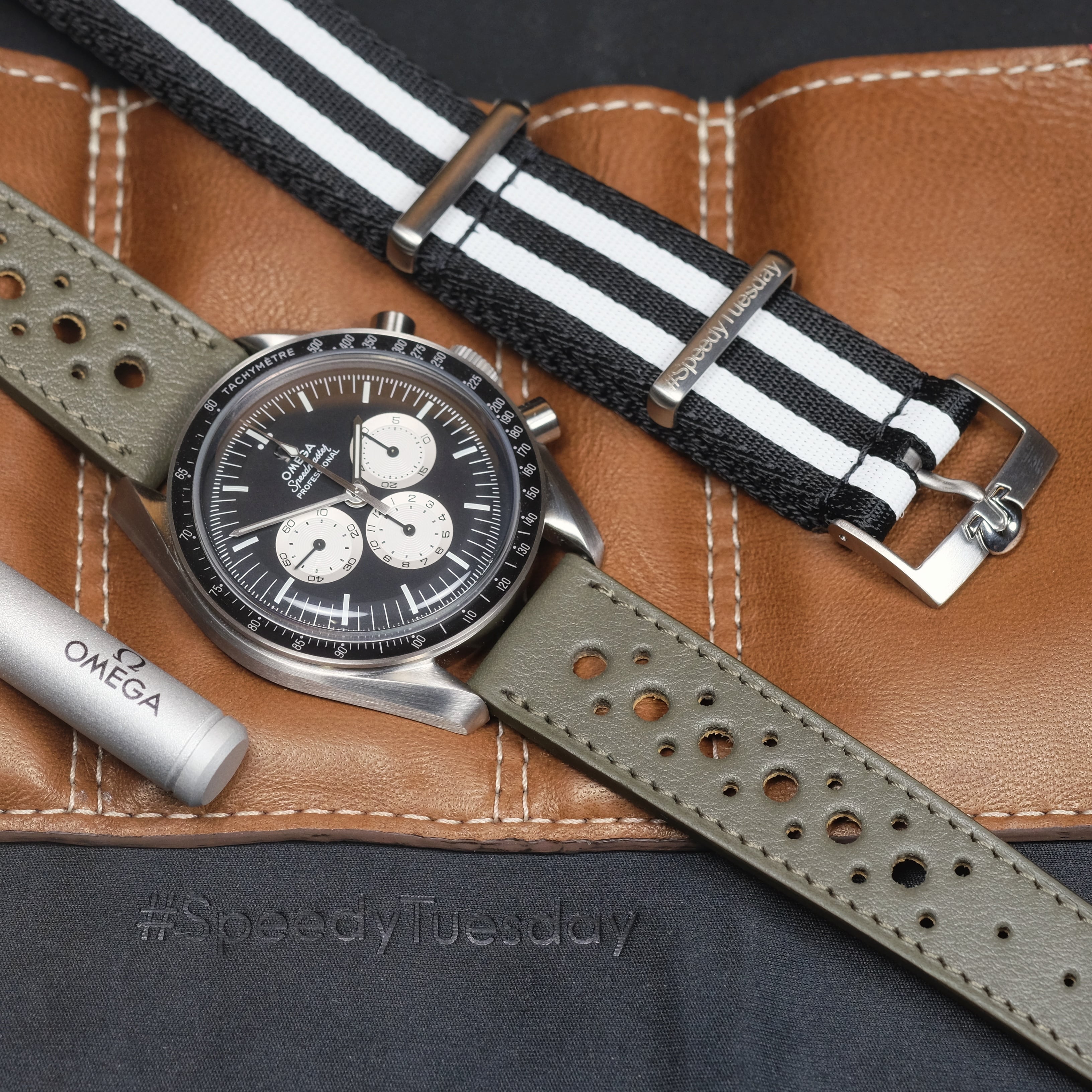 This Rally Khaki green colour version with tone-on-tone stitching is giving your watch a strong masculine and trendy style. It can suit perfectly all types of chronographs or tool watches. It works on any kind of dial color. You will love it.