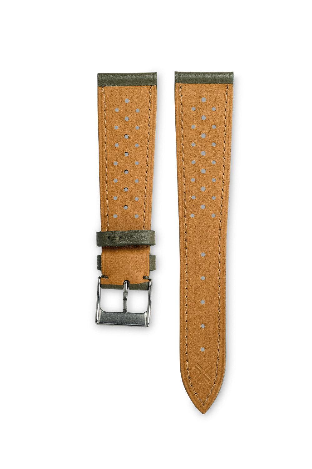 This Racing Khaki Green color version bring a real touch of originality strengthen by the small holes racing design. It can really transform any watch into a very stylish combo.Â