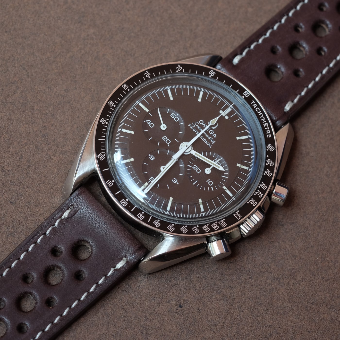 This Rally Chocolate Brown colour version is giving your watch warmness and discretion. Moreover, It will bring a clearly sporty style to your watch. It works very well on a cream or champagne color dial but can also enhance a nicely tropicalized brownish dial highlighting uniqueness of your watch.