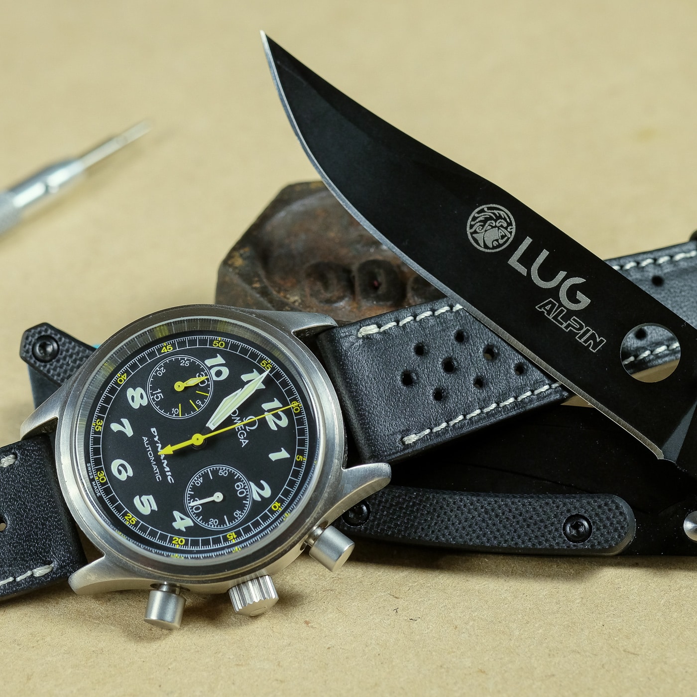 This Racing deep black color version is giving your watch a clear sporty style quite linked to historical racing car pilot heritage. Thus, it can suit perfectly all types of chronographs or diver watches.Â