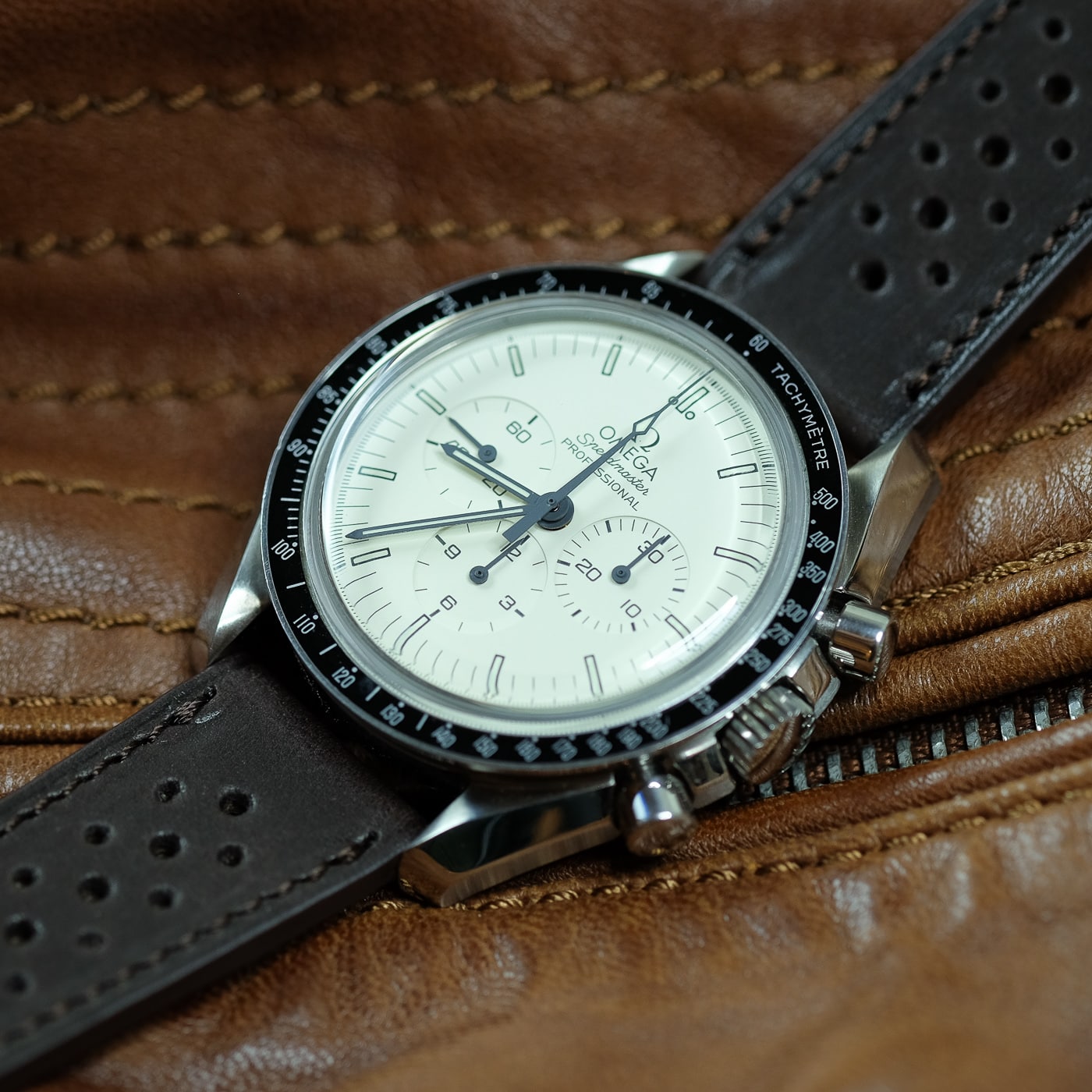 This Racing deep black color version is giving your watch a clear sporty style quite linked to historical racing car pilot heritage. Thus, it can suit perfectly all types of chronographs or diver watches.Â